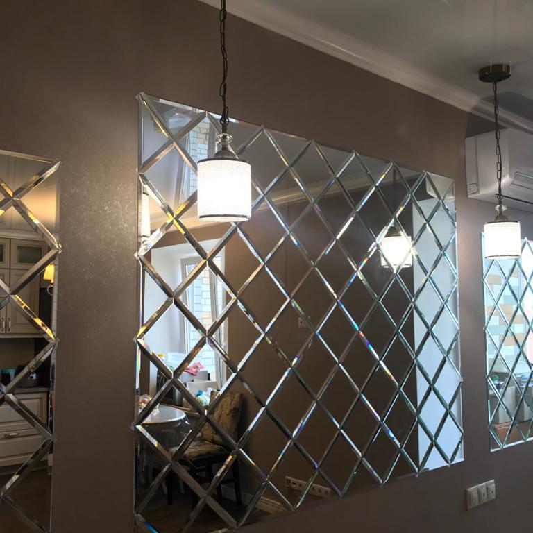 Использована серебряная зеркальная плитка «вытянутый ромб».